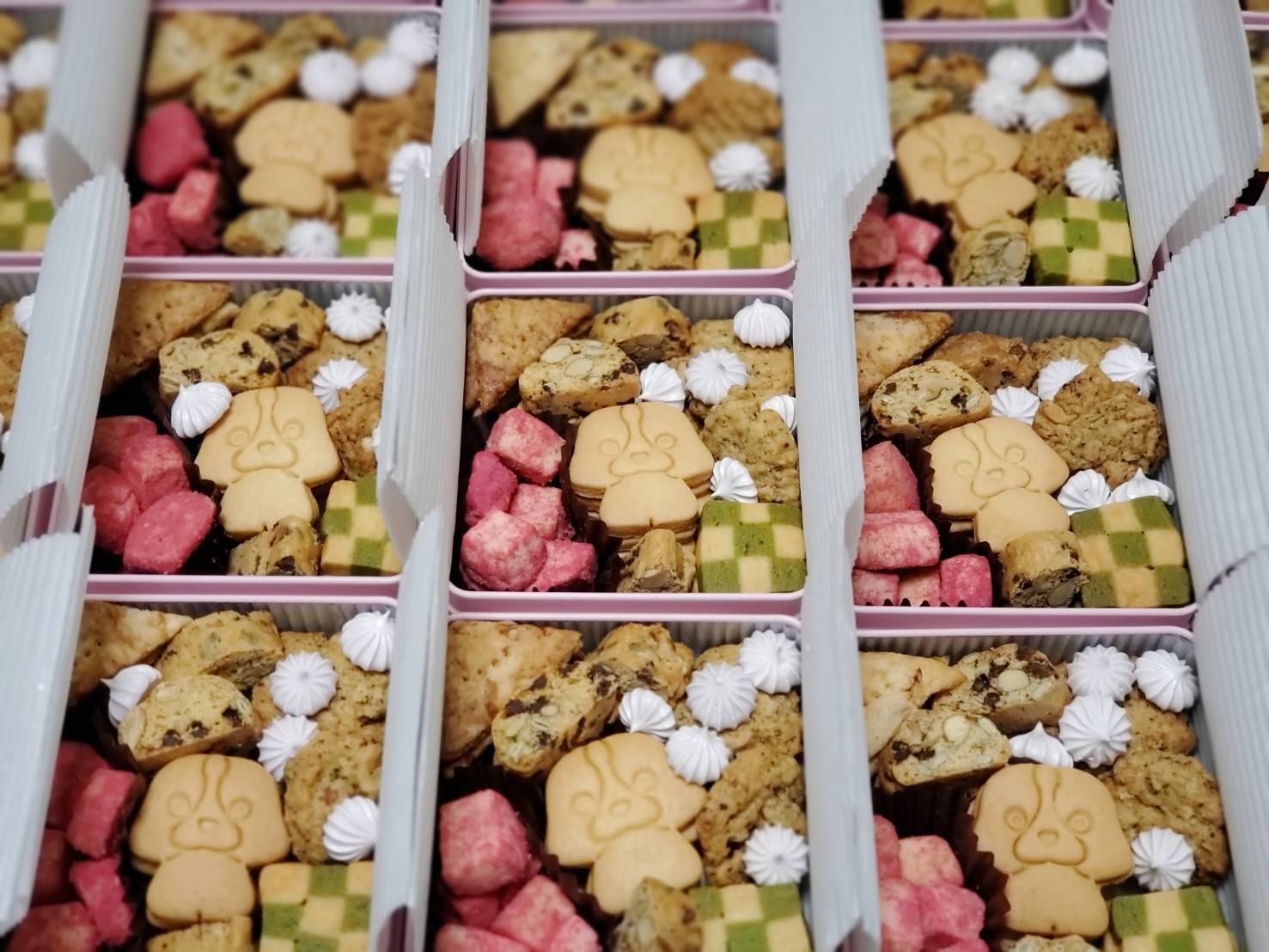 国産小麦、よつ葉バター、花見糖などをベースに様々なナッツを合わせたものや、シアンをイメージしたクッキーをギュギュギュッと詰め合わせました✨